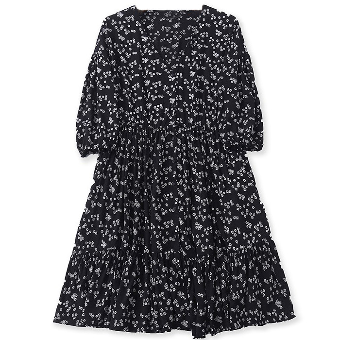 Платье макси юбка клеш красные мелкие цветы на черном резики