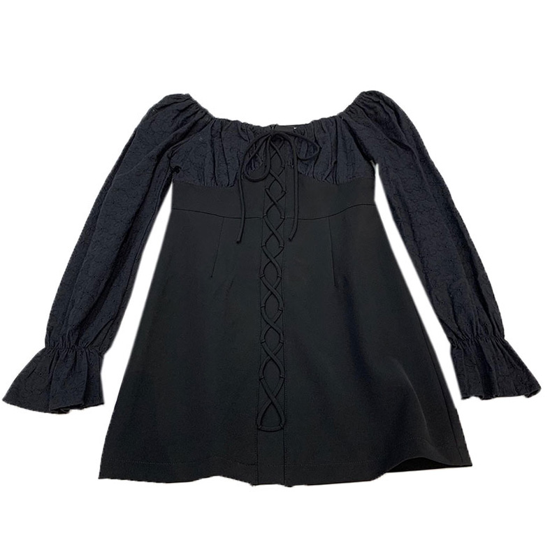 Платье мини шнуровка по середине кружевные рукава плечи на резинке