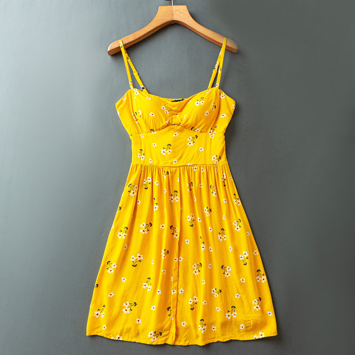 Сарафан бюстье тонкие лямки желтый в белый цветочек