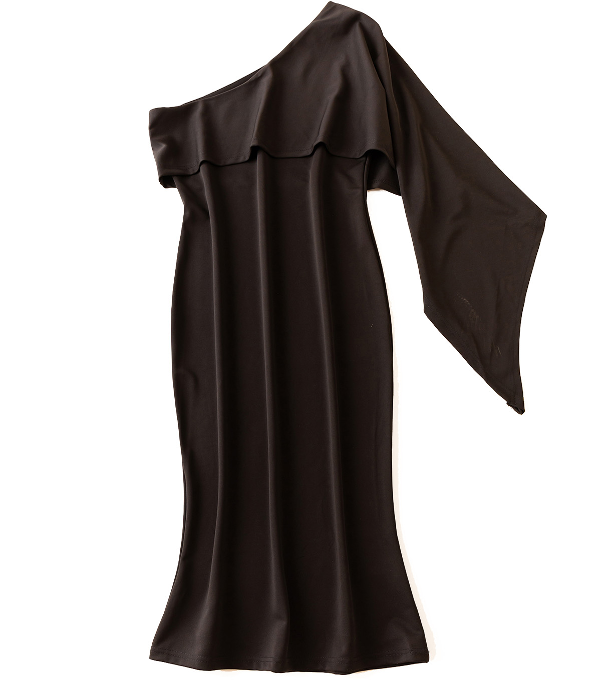 Платье по фигуре открытое плечо один рукав углом драпировка