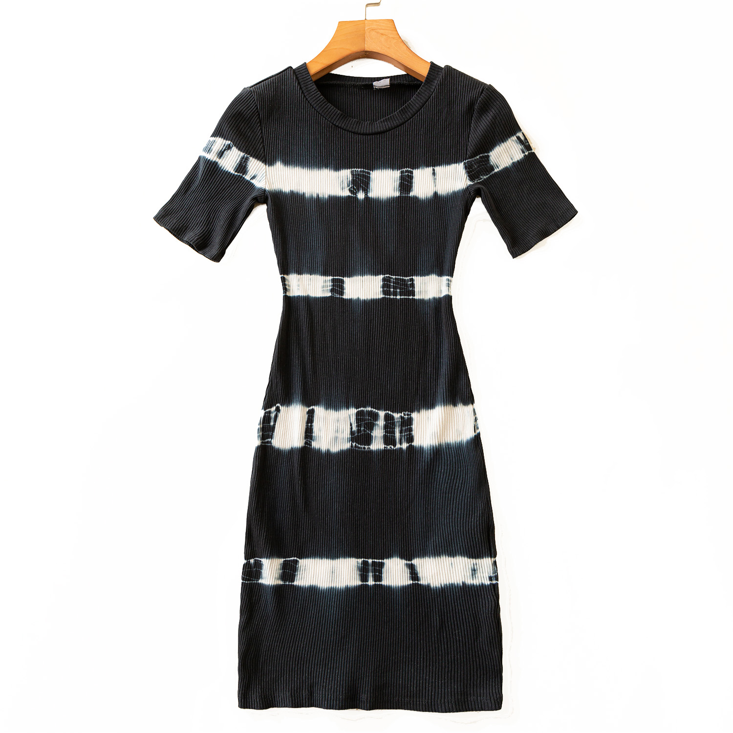 Платье стрейч рубчик по фигуре короткий рукав разводы полосами