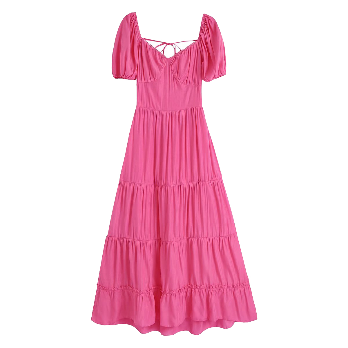 Платье миди уровнями короткий рукав акцент на груди открытая спина с завязками