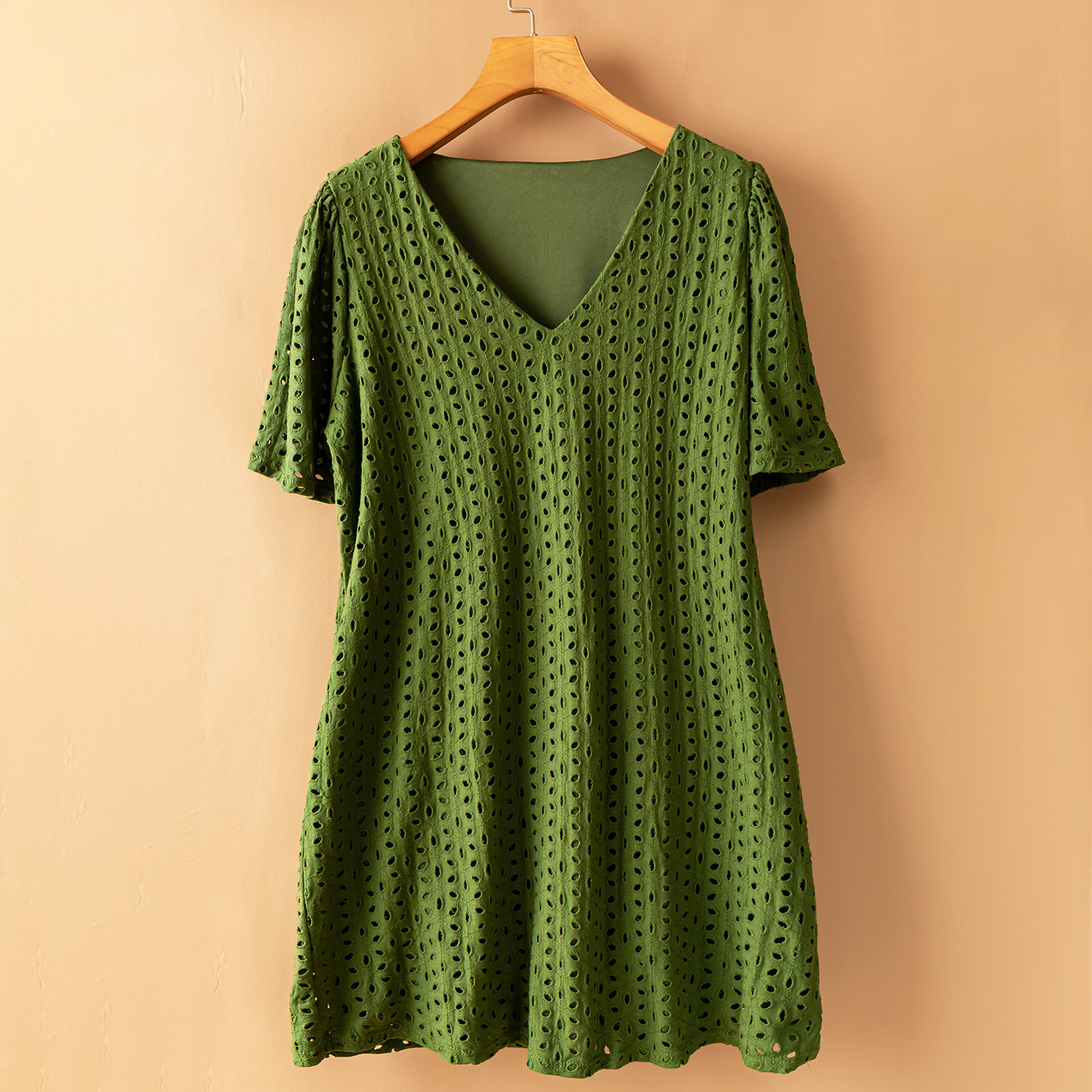 Платье мини широкое кружево шитье короткий рукав V-вырез