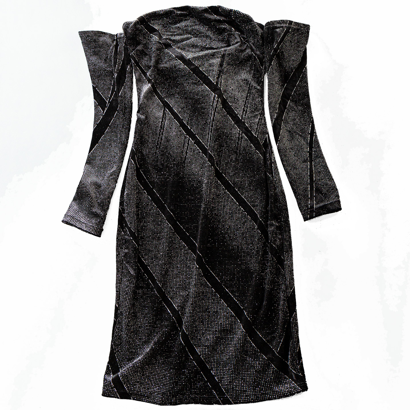 Платье по фигуре бархат напыление точки открытые плечи + рукава