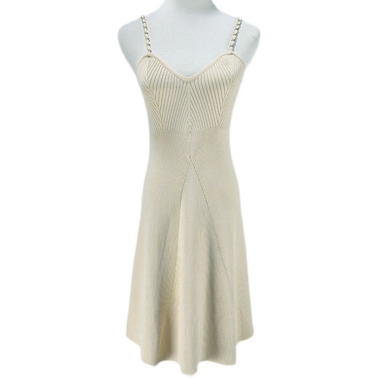Платье трикотаж юбка клеш тонкие лямки сквозь золотую цепь