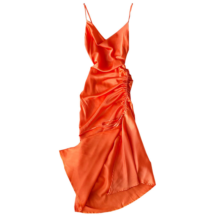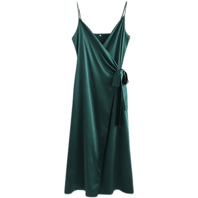 Платье атлас на бретелях запах с поясом