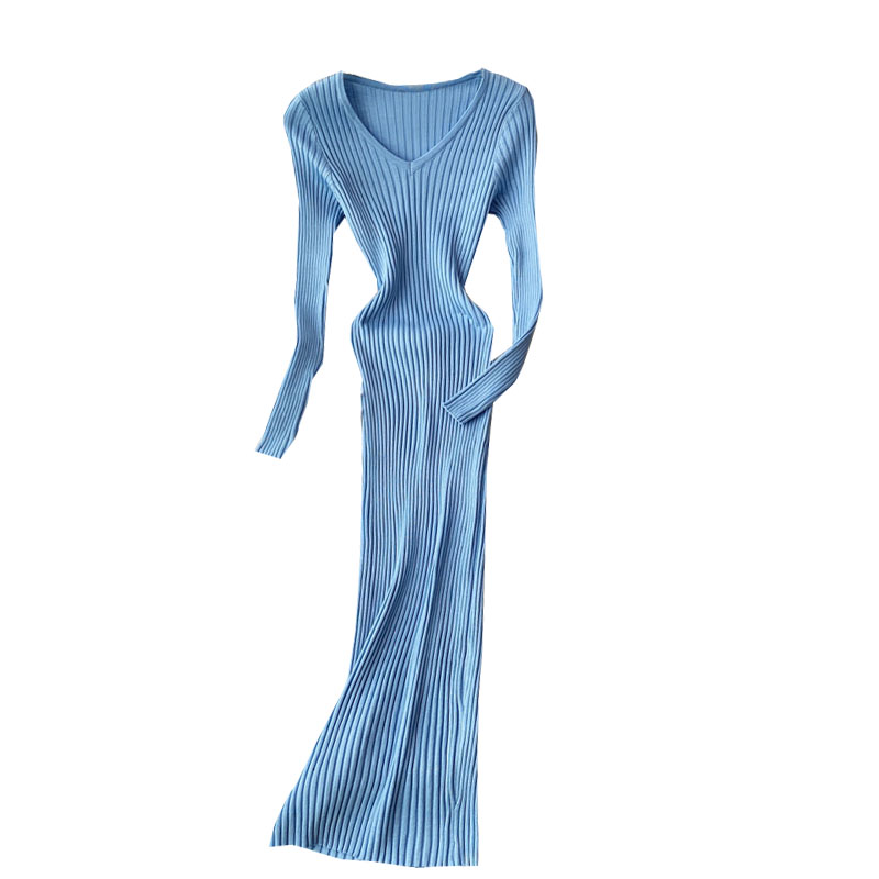 Платье лапша миди v-вырез длинный рукав