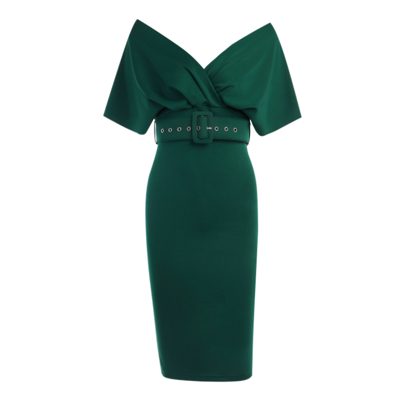 Платье миди v-вырез открытые плечи + ремень