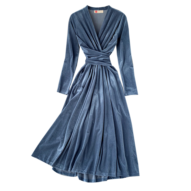 Платье миди бархат V-вырез пояс на талии BF