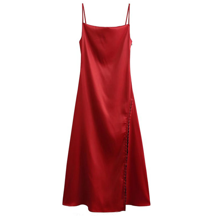 Платье комбинация красное на брителях на спине завязка сбоку разрез на крючках
