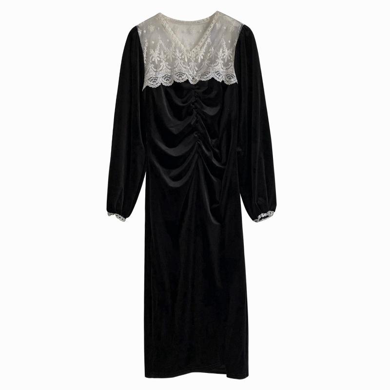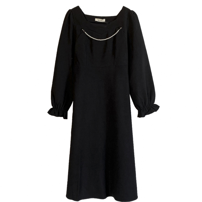 Платье вельвет миди MINA + пристегивается жемчужная нить на груди