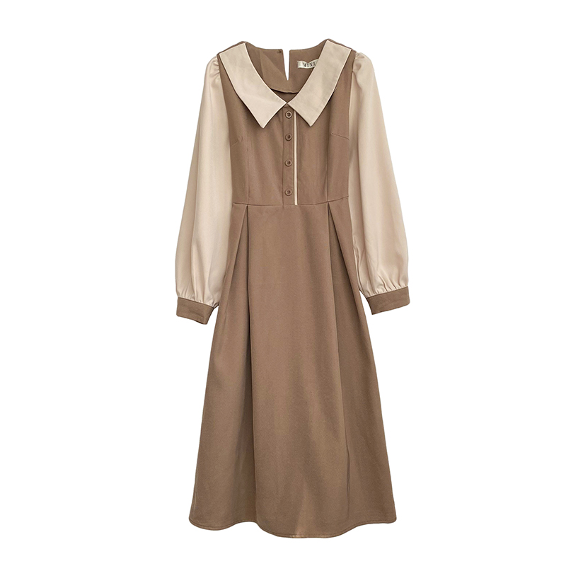 Платье миди винтаж бежевые рукава и манжеты 4 пуговицы на груди