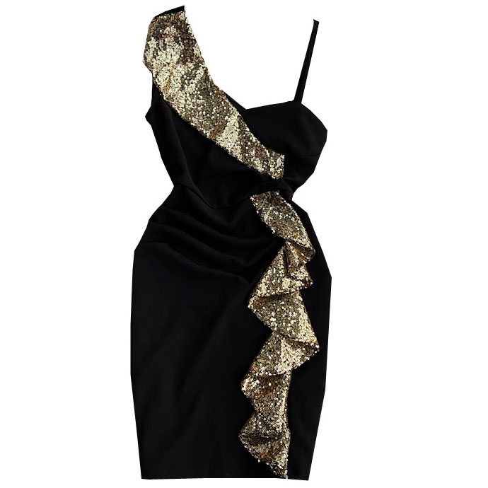 Платье мини асимметричный верх золотая вставка рюша от пояса по длине