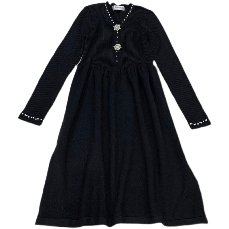 Платье трикотаж юбка клеш жемчуг по краю пуговицы снежинки в стразах