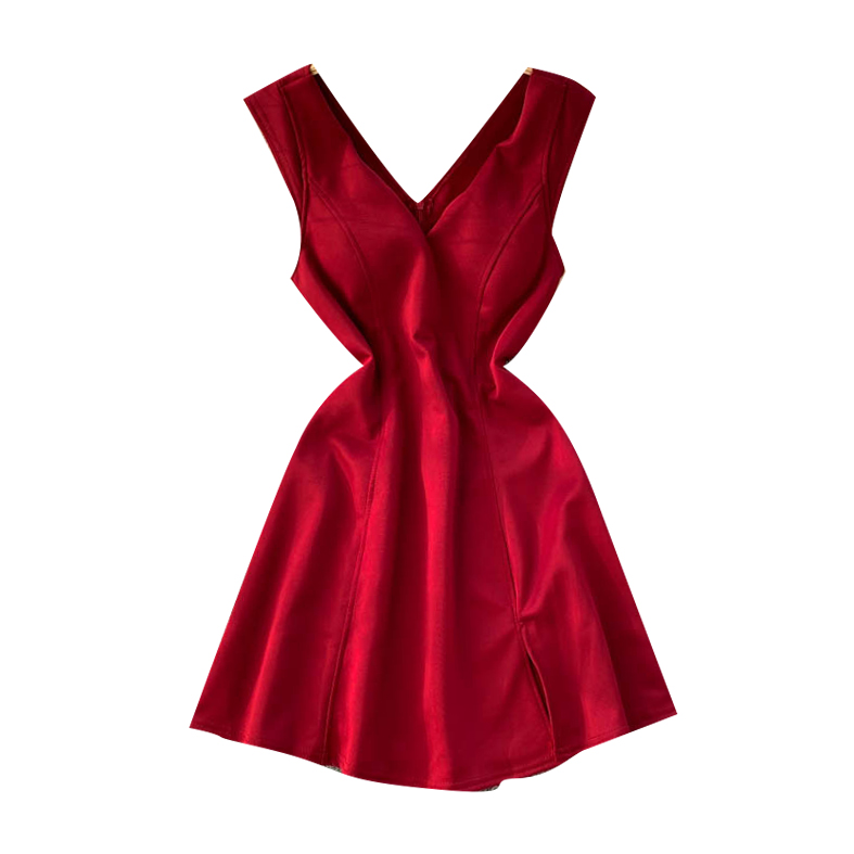 Платье мини широкие лямки V вырез с 2х сторон разрез по ноге