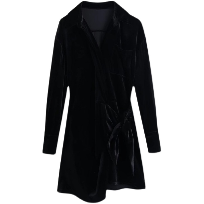 Платье мини длинный рукав бархат на запах