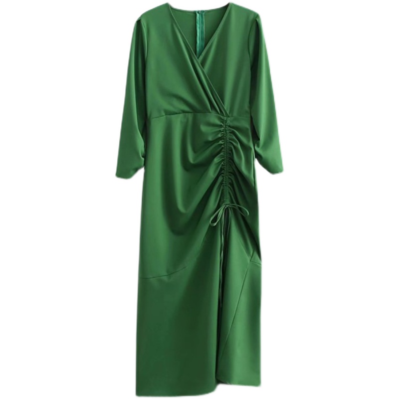 Платье миди V-вырез грудь на запах сбоку сборка на шнурке