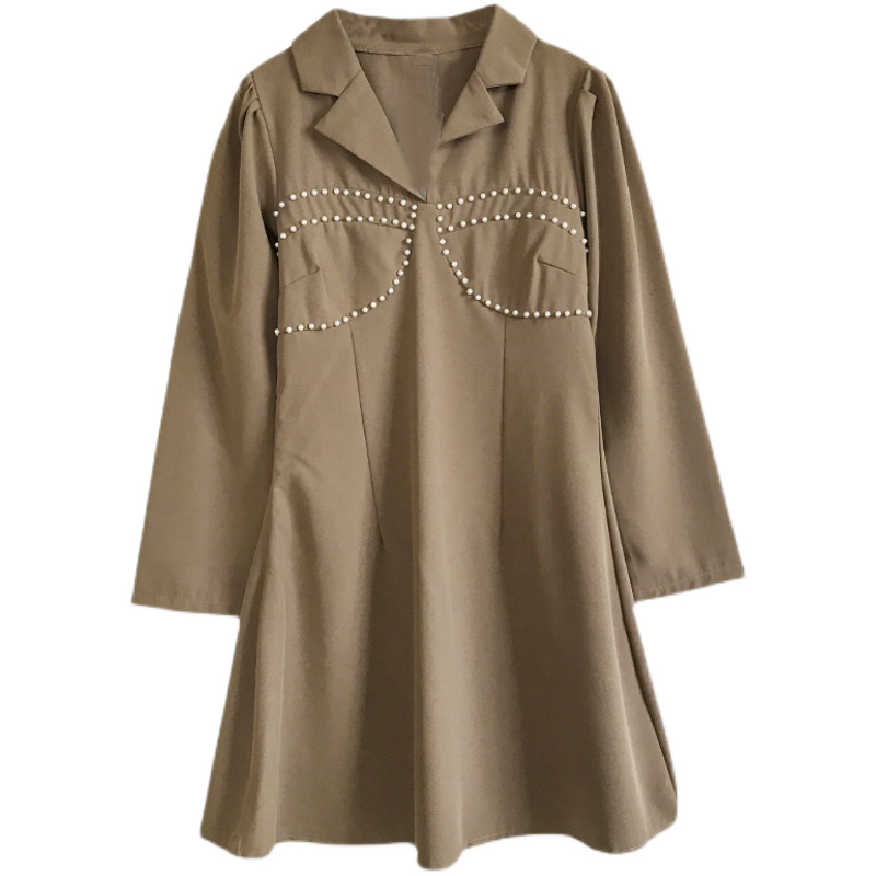 Платье мини с воротником жемчужины на груди в виде лифа