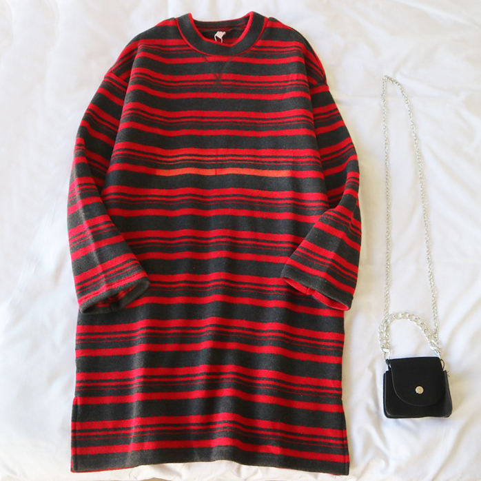 Платье широкое спорт на флисе красно-черные полосы