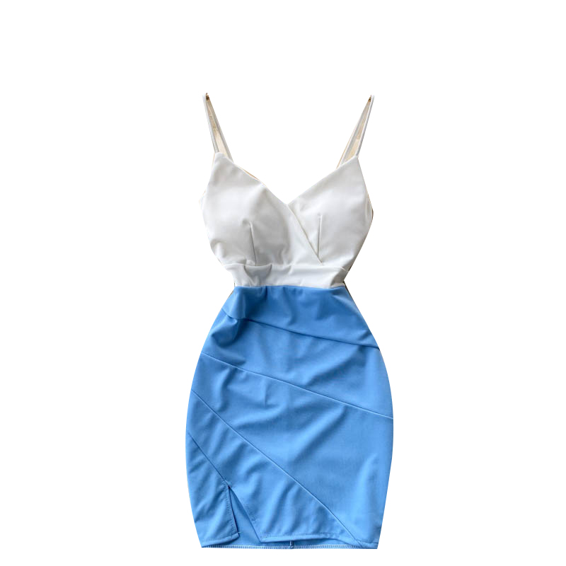 Платье мини тонкие лямки белый верх низ другого цвета разрез по ноге