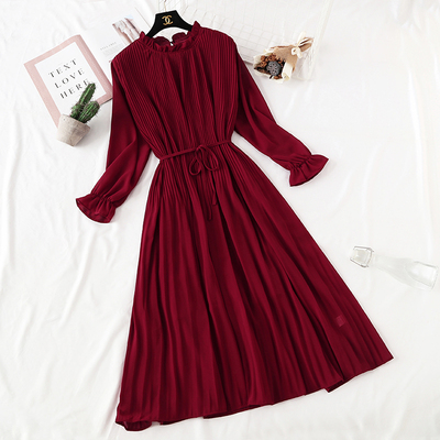 Платье миди шифон длинный рукав на вороте рюша однотон