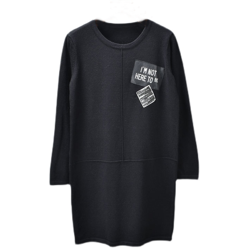 Платье прямое мини трикотаж 2 нашивки Im not here to be