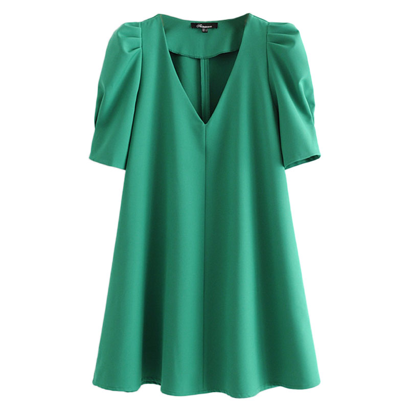 Платье клеш мини V-вырез рукав со сборками