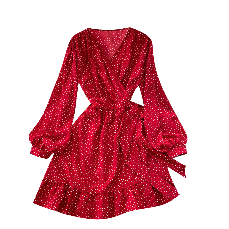 Платье мини мелкий горох на запах + пояс в цвет длинный рукав
