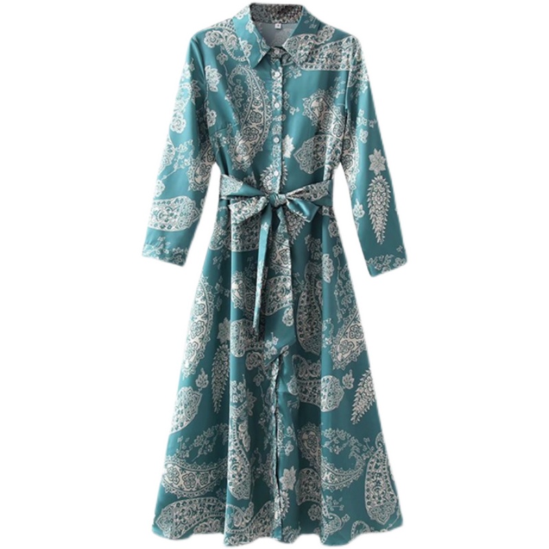 Платье рубашка миди крупный принт огурцы + пояс