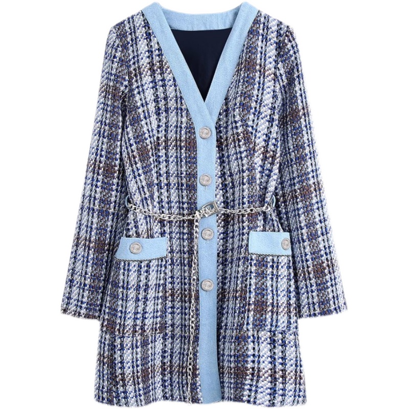 Платье жакет средней длины в клетку серебряные пуговицы со стразами + пояс цепь