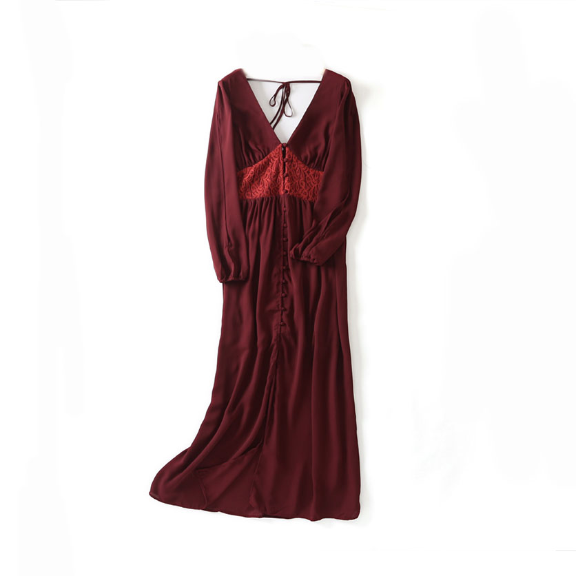 Платье макси бордо на пуговках эффект кружевного корсета