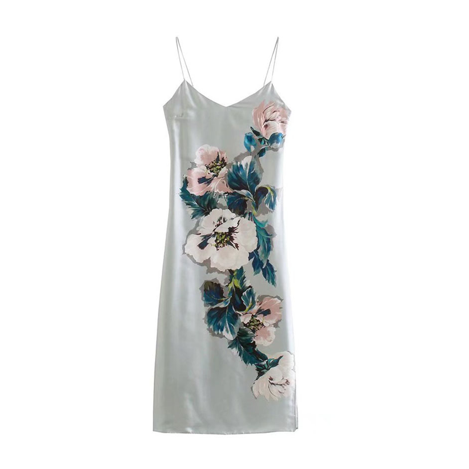 Платье комбинация атлас принт очень крупные цветы листья