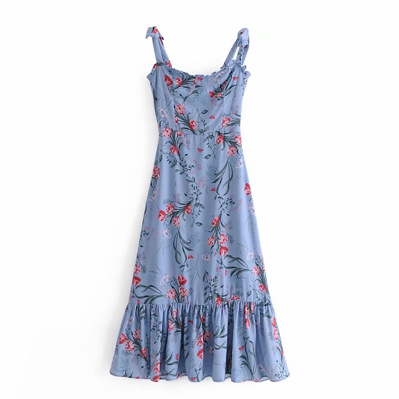 Платье макси цветочный принт лямки на завязках