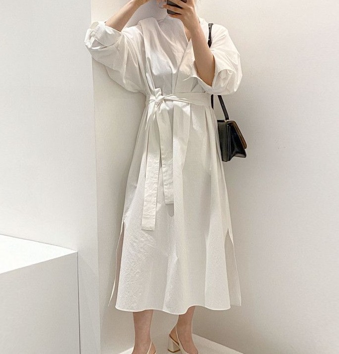 Платье-рубашка с объемными рукавами + пояс на талии
