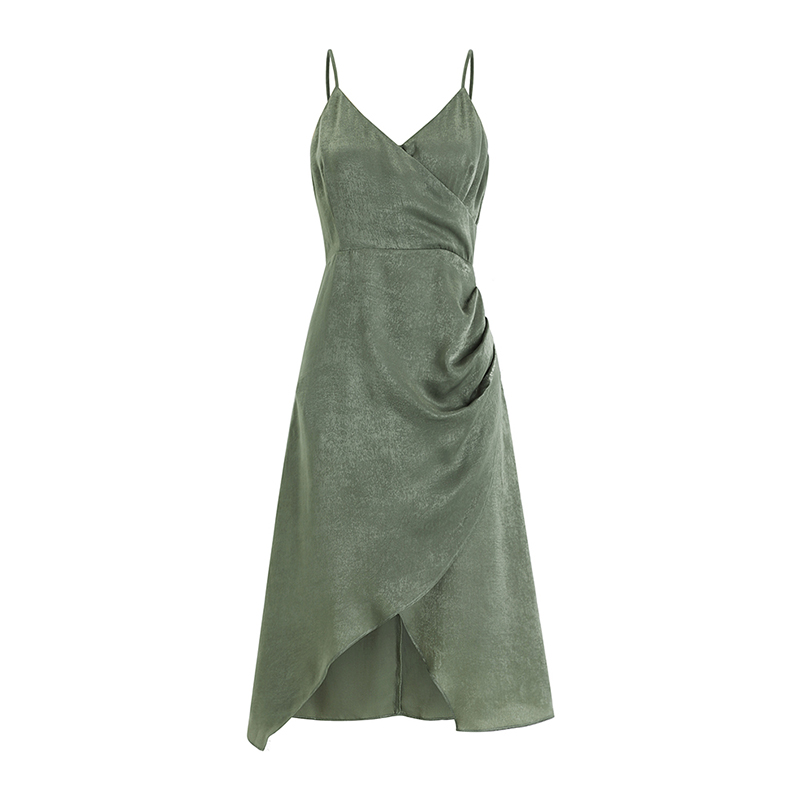 Платье миди перламутровое асимметричное на тонких лямках