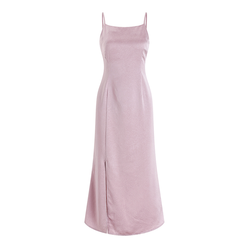 Платье миди атлас тонкие лямки разрез по ноге