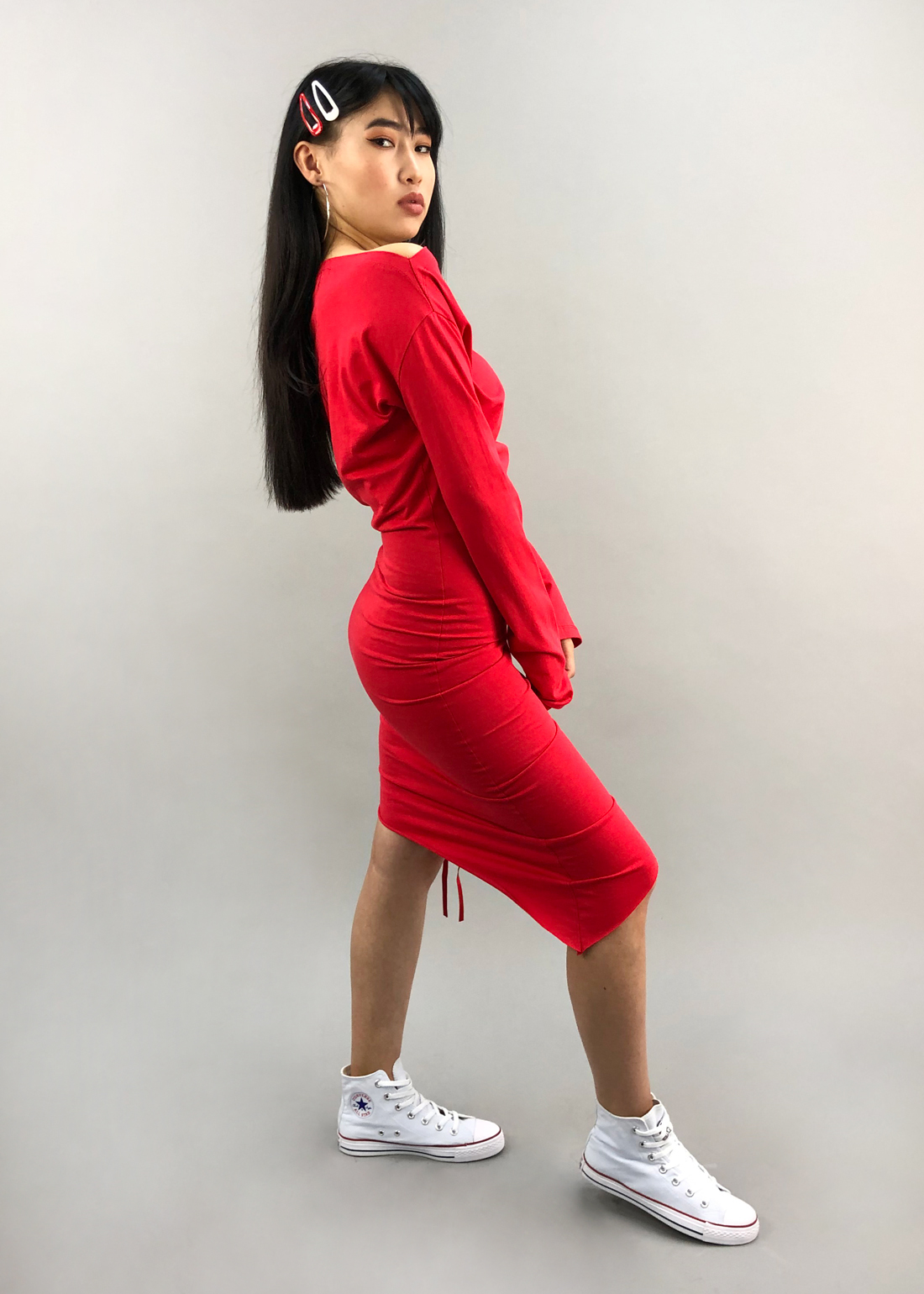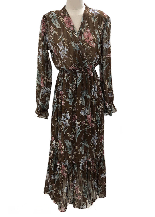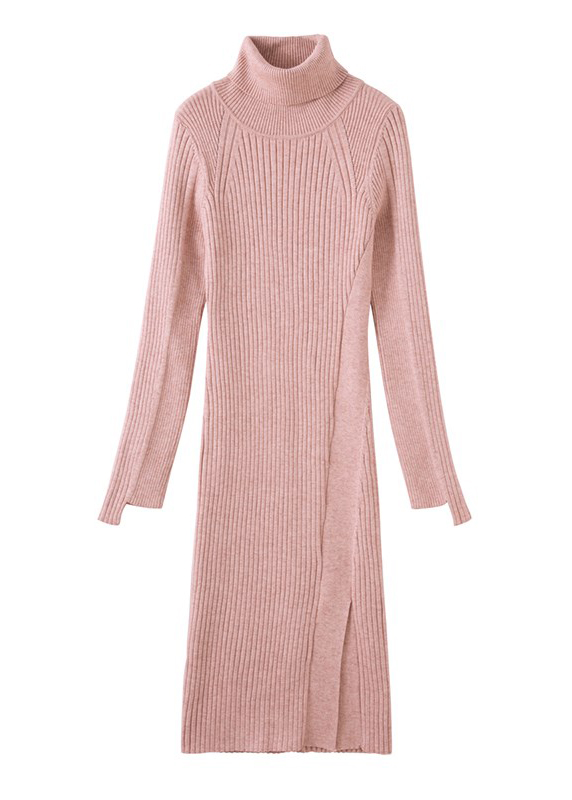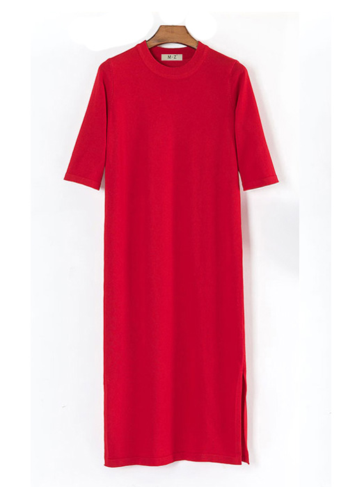 Платье трикотаж макси рубчик V-вырез разрез сзади