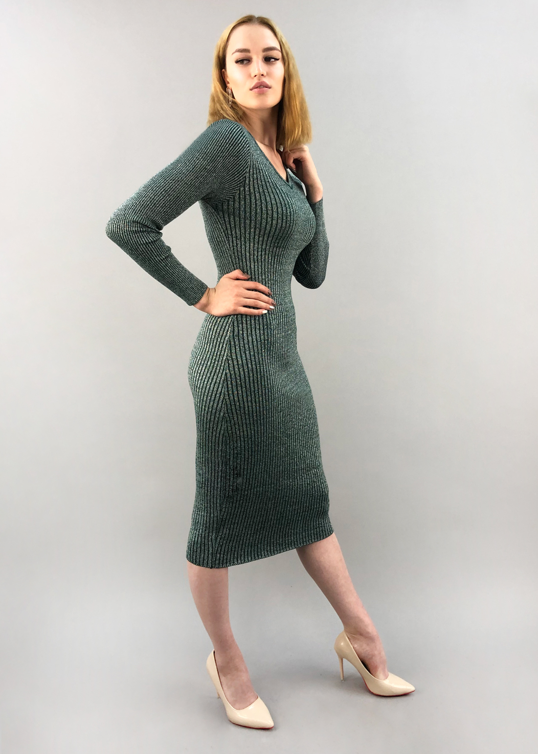 Платье трикотажное с люрексом V-образный вырез длины миди