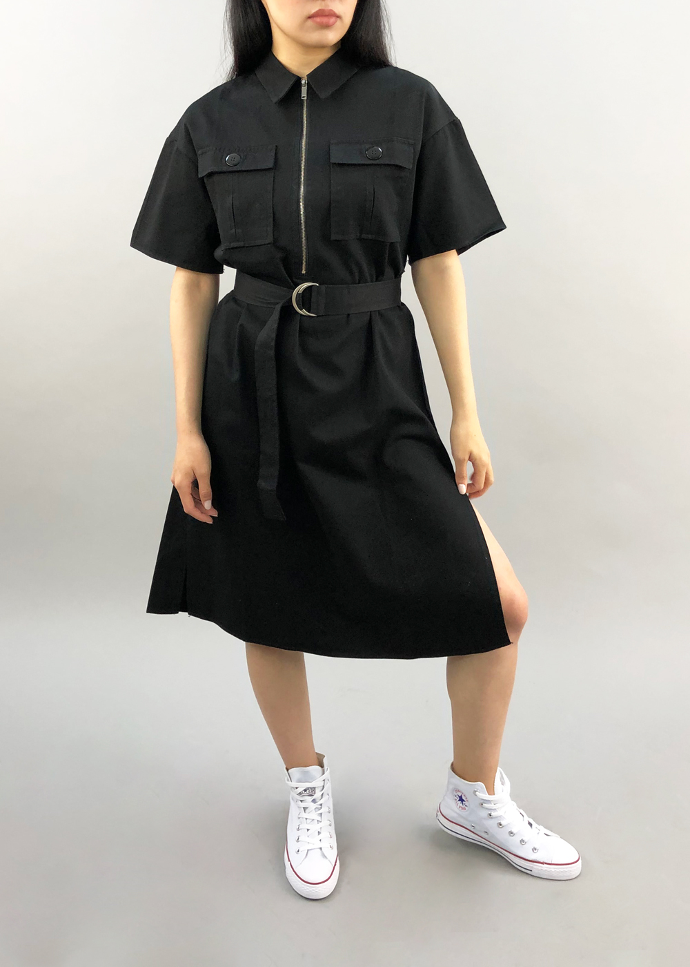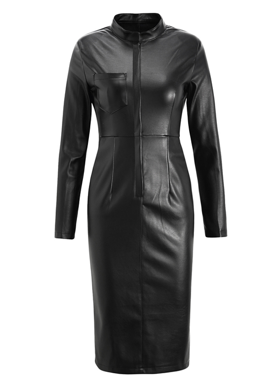 Платье футляр кожзам на молнии впереди карман сбоку на груди