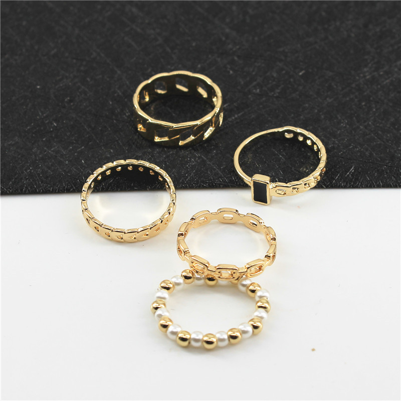 Кольца набор 5 шт бусины сердцечки звенья черный камень