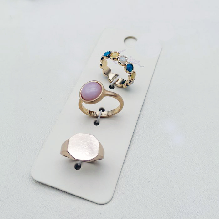 Набор колец 3 шт. перстень розовый камень круглые камни