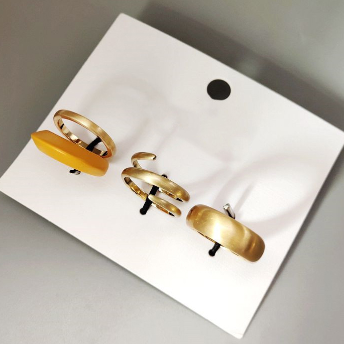 Кольца крупные матовые набор 2 шт золото спираль + желтое