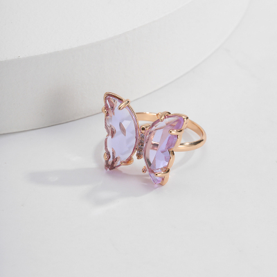 Кольцо большая бабочка крылья из цветного стекла