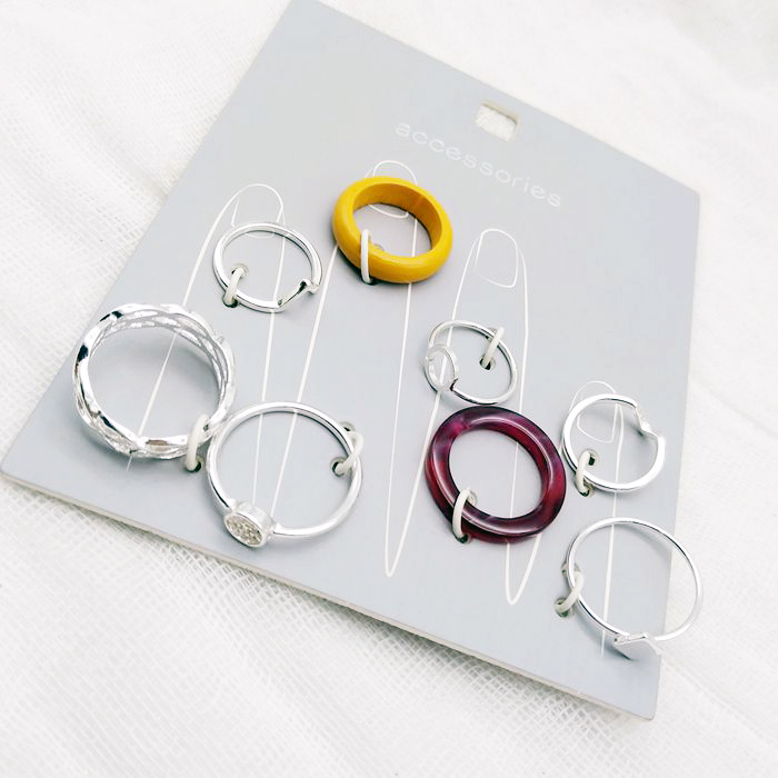 Набор колец 6 шт. серебряные 1 желтое 1 фиолетовое