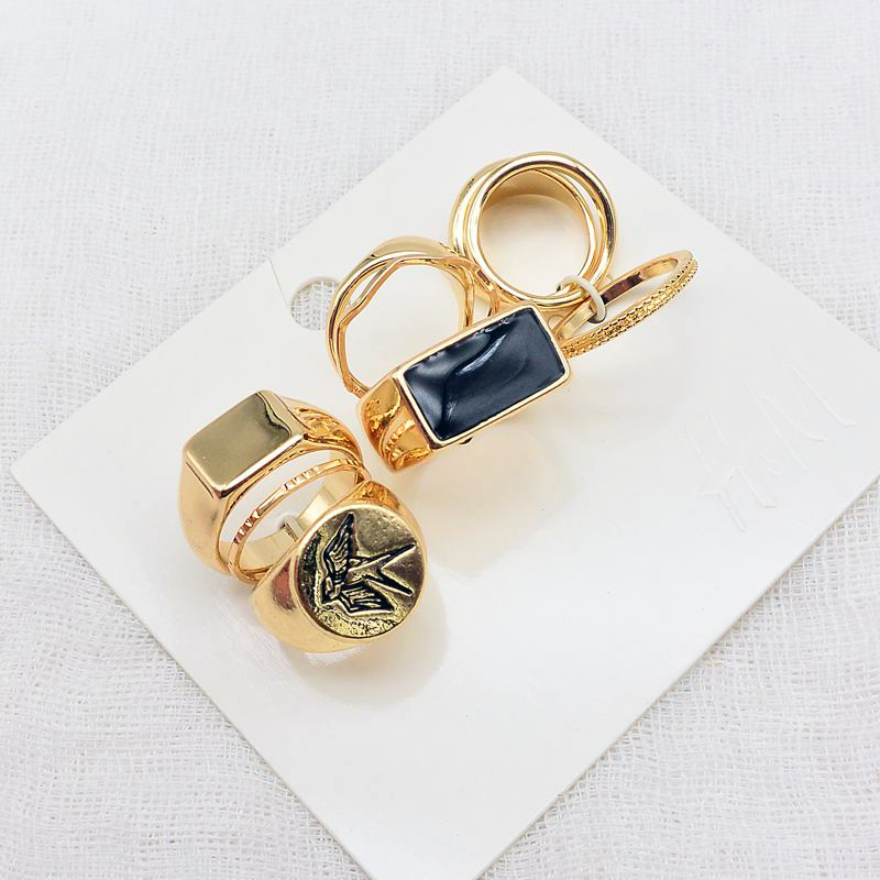 Набор колец 9 шт. черный перстень ласточка