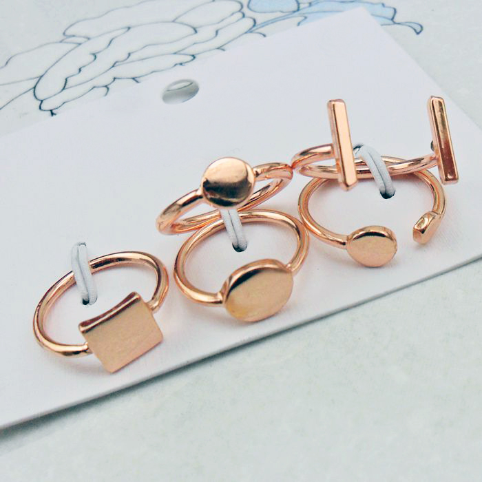 Набор колец 5 шт. фигуры круг квадрат палочки